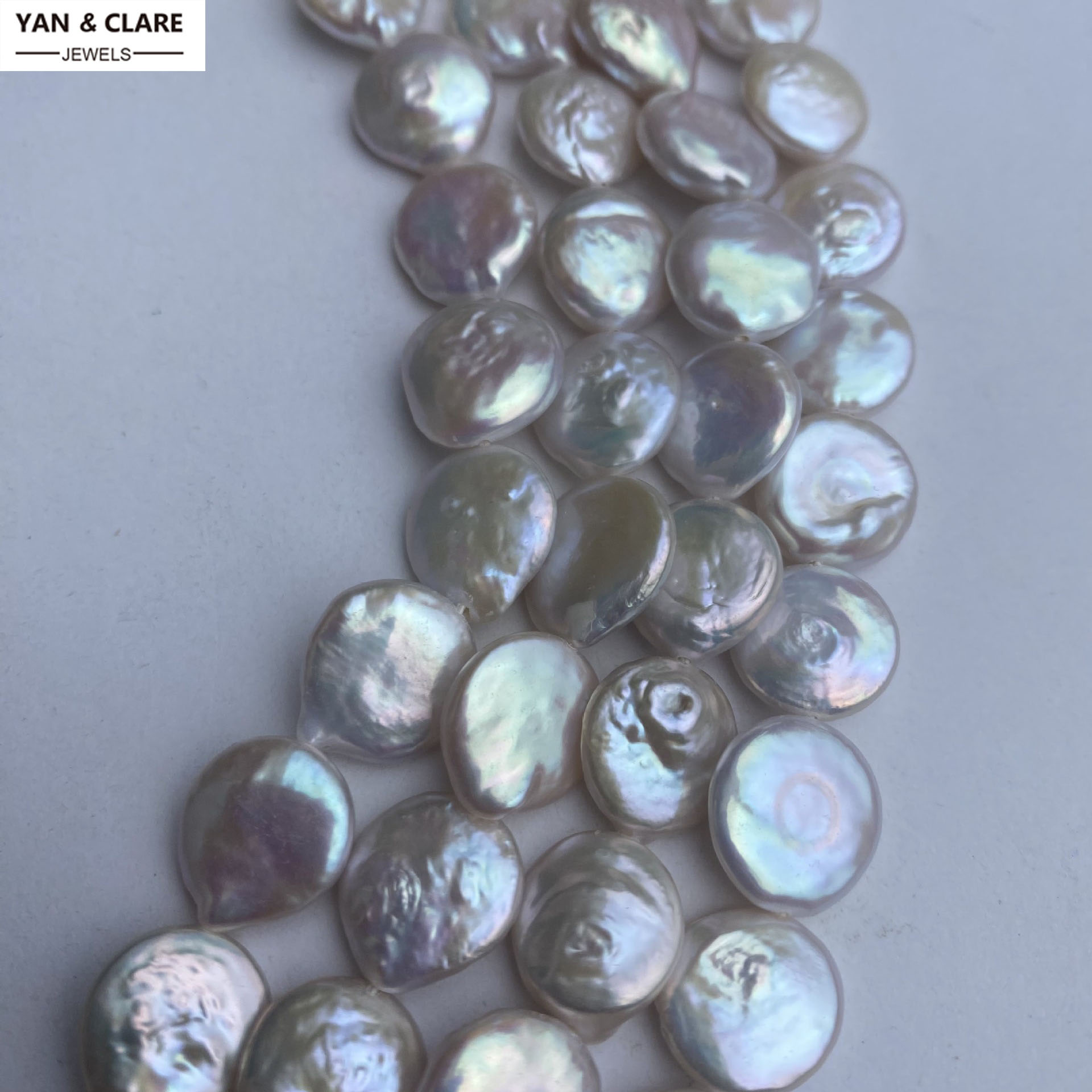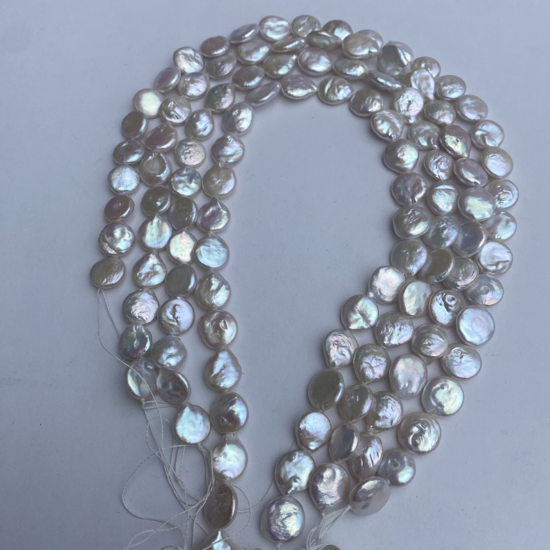 13-14mm Purple Color Coin Button Shape Natural Pearl Strand